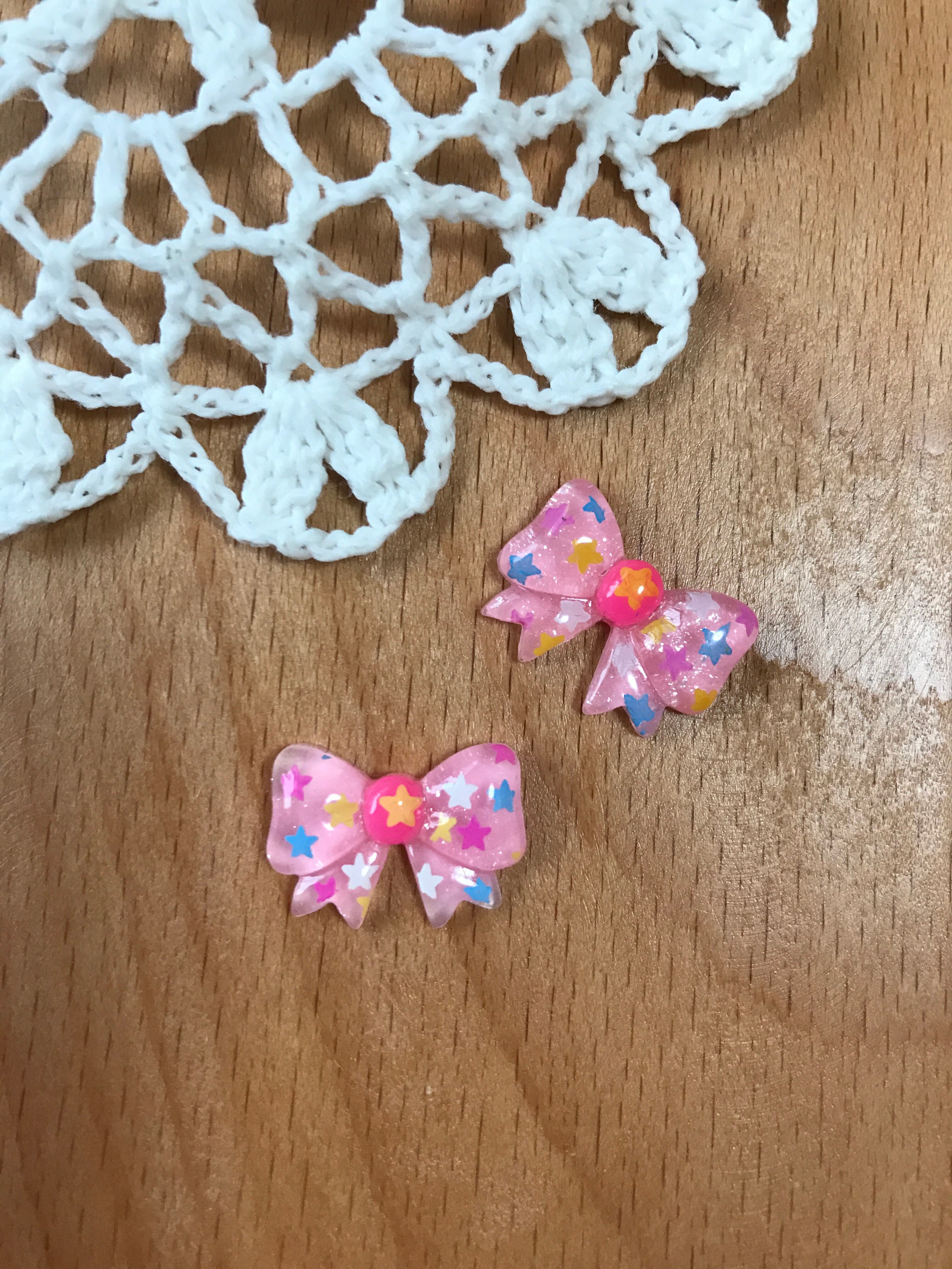 クリア星柄リボン◇プラスチック製パーツ