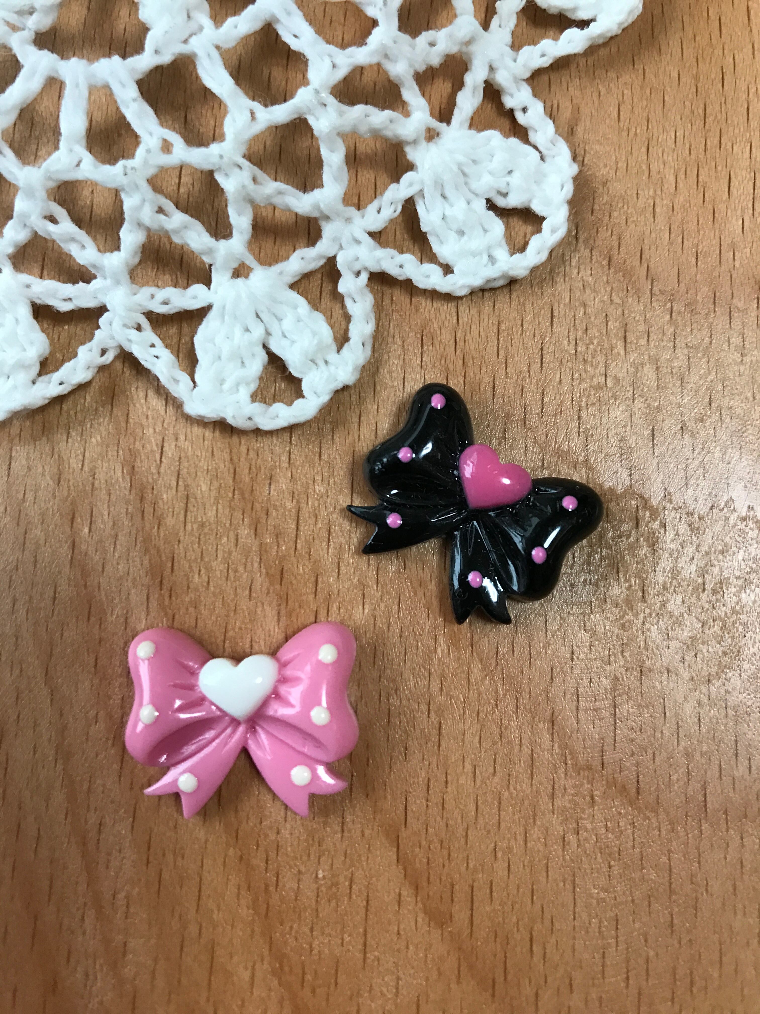 ピンク&ブラックリボン◇プラスチック製パーツ