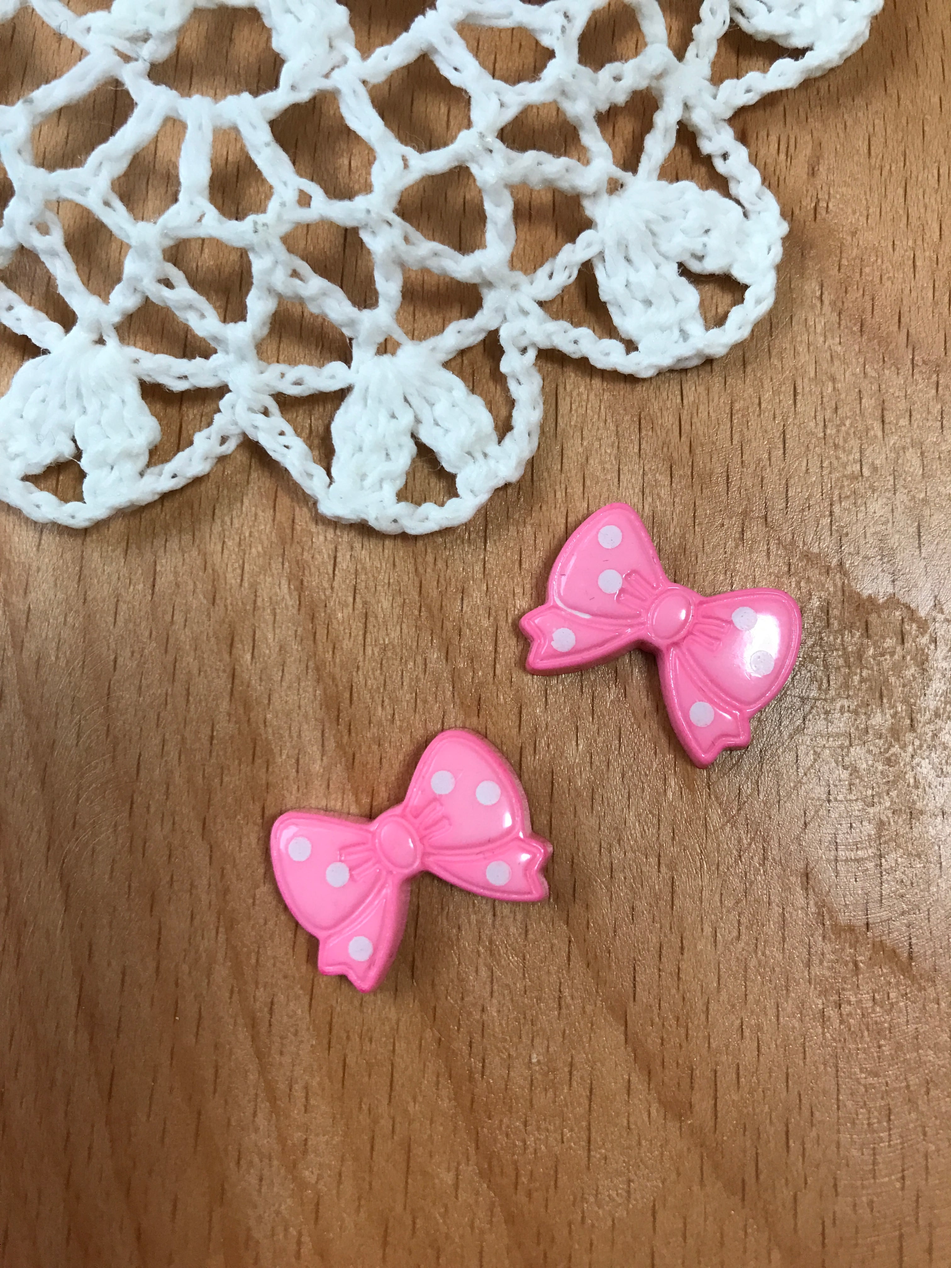 ピンクドットミニリボン◇プラスチック製パーツ