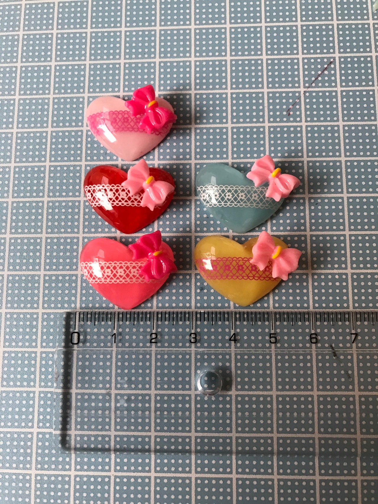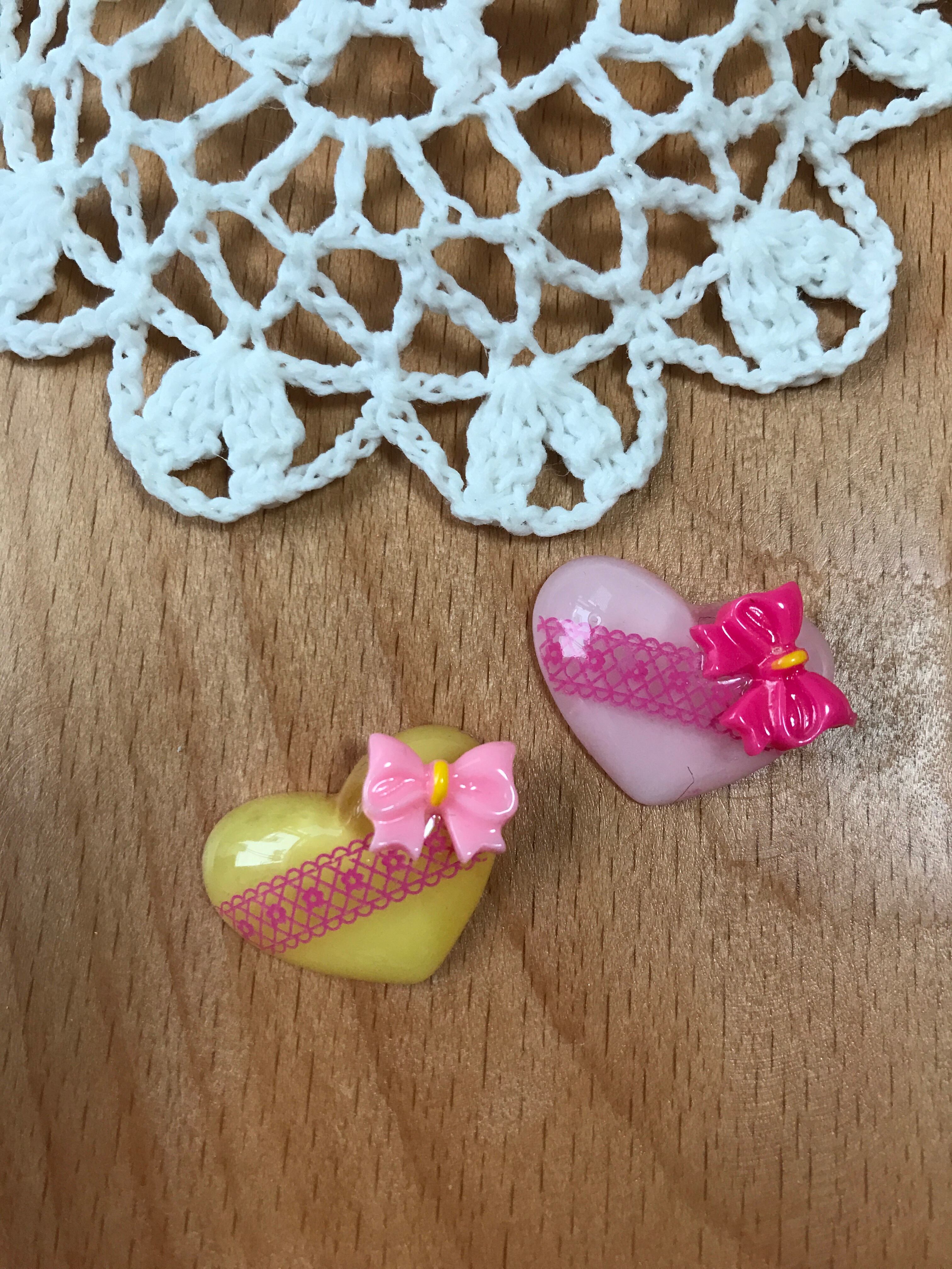 レース×リボンハート◇ピンク&イエロー◆プラスチック製パーツ