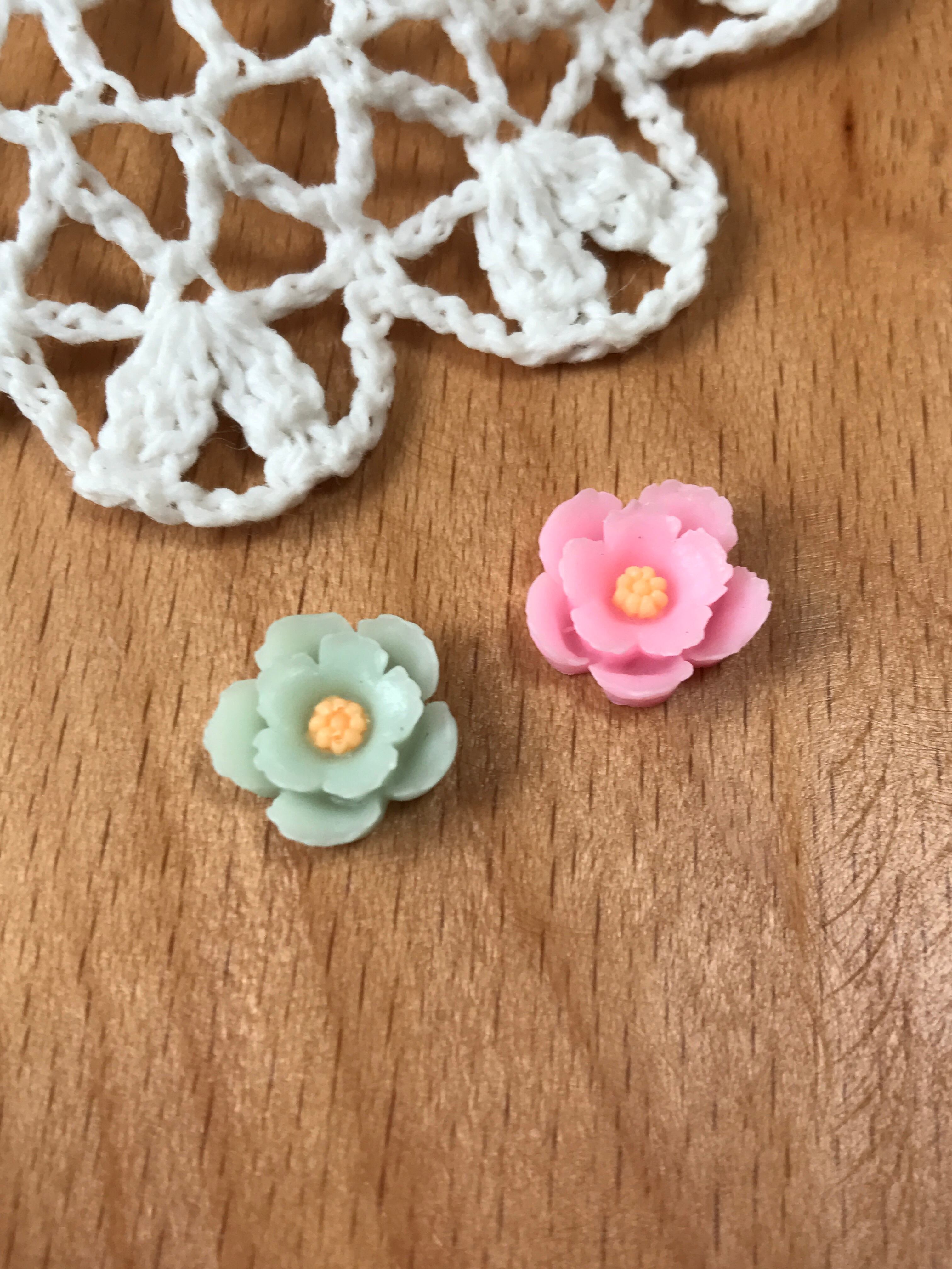 お花◇薄グリーン&薄ピンク◆プラスチック製パーツ