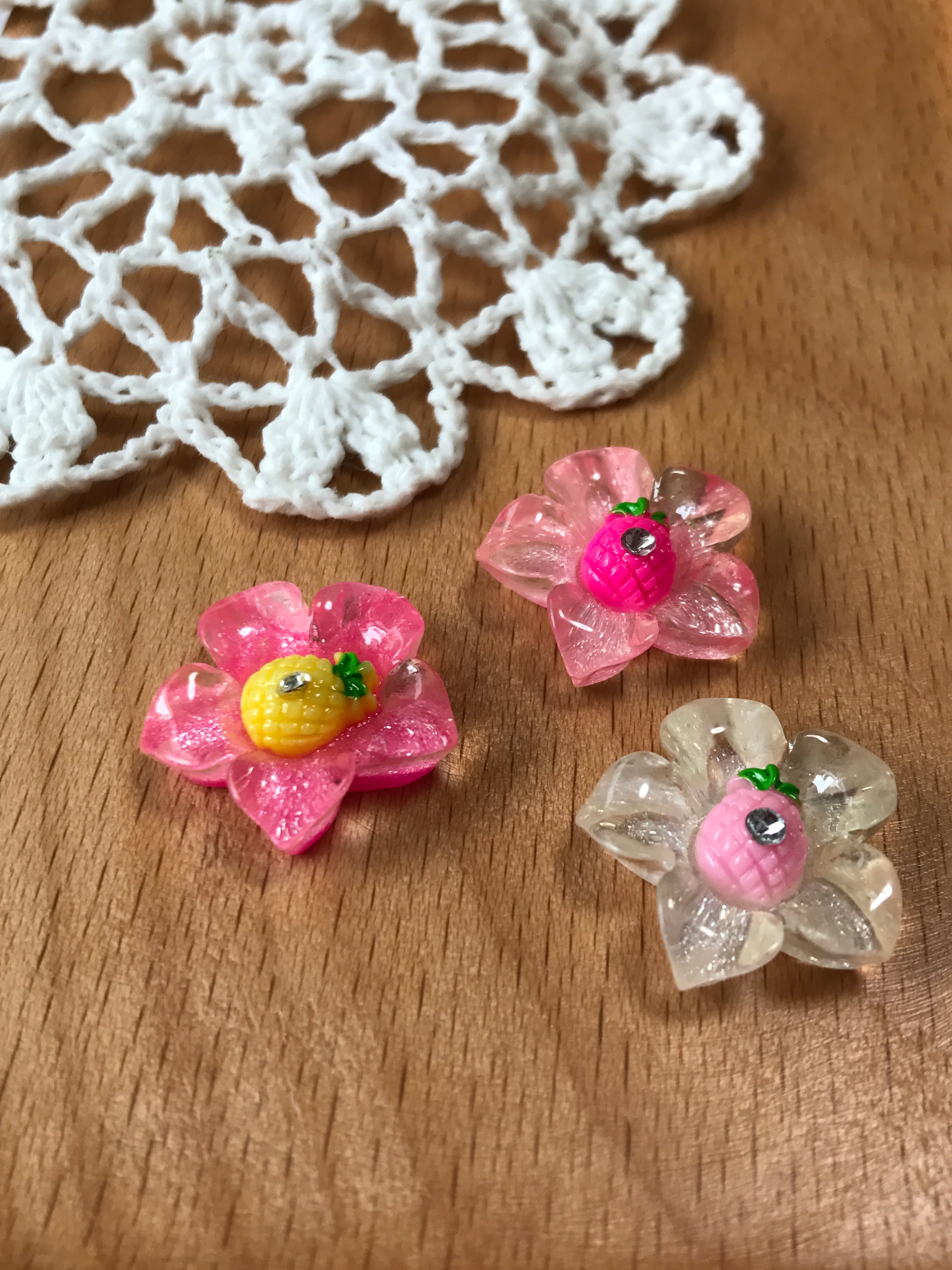 お花◇ラメクリア3カラー◆プラスチック製パーツ